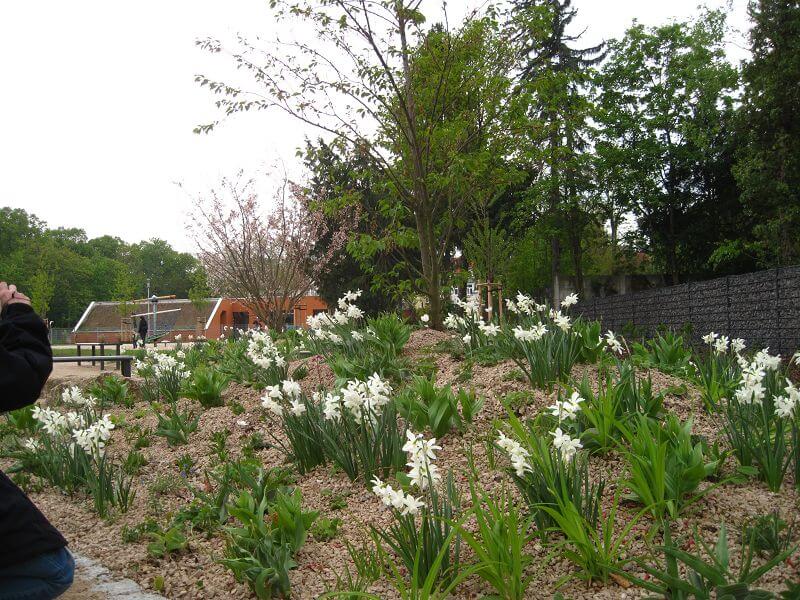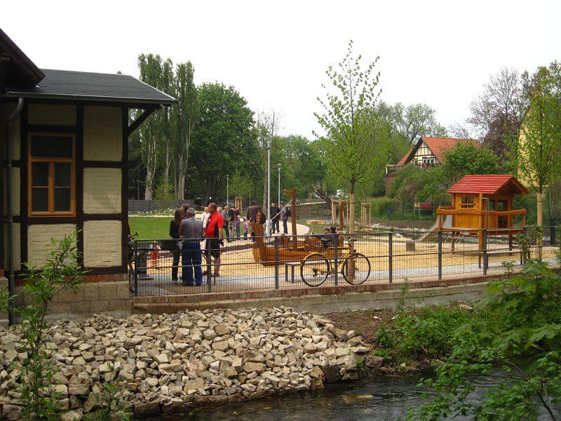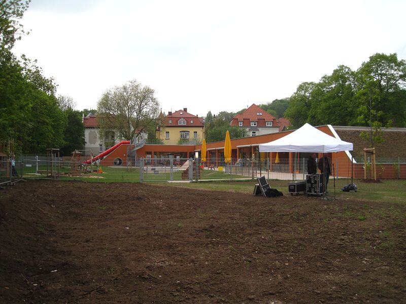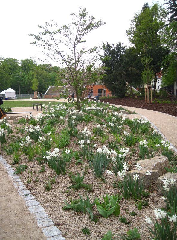 Zwischen zwei Kindertagesstätten lässt sich nun wunderschön sitzen oder flanieren – bis zum früheren Gondelteich und ganz nahe zum idyllischen Louisenpark.