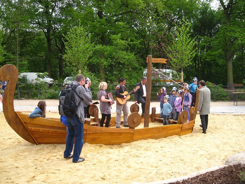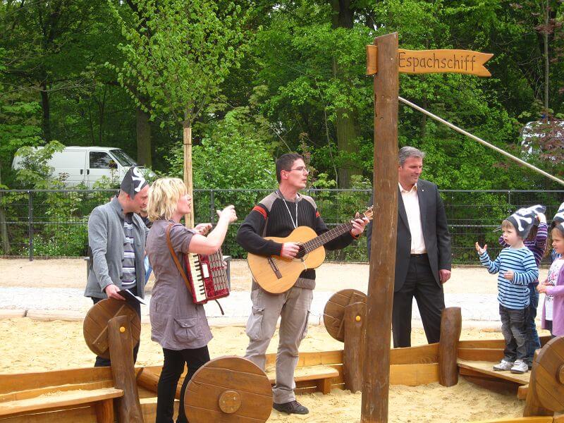 Zwischen Walkstrom und altem Gondelteich liegt das große Sandmeer. Die Sandmeer-Piraten habe noch vor der Eröffnung den Herrn Oberbürgermeister gekapert – worüber dieser etwas verdrieslich schaute. Aber wenig später war er wieder frei und wohl ganz froh, nicht im Kahn auch noch übern Teich fahren zu müssen.