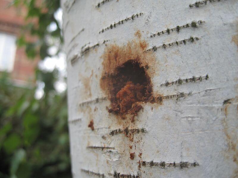 Am Sonntag traf mich der Schlag. Hat da nicht irgendein Rüpel einfach und ungeniert Löcher in unsere schöne Birke gebohrt?