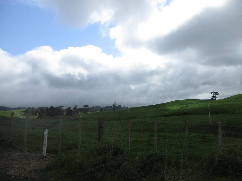 Auf den grünen Hügeln und in den Tälern – an vielen Stellen im Land – beeindrucken mich die unglaublich großen Bäume. Auch hier stehen viele dieser übergroßen Solitärs.