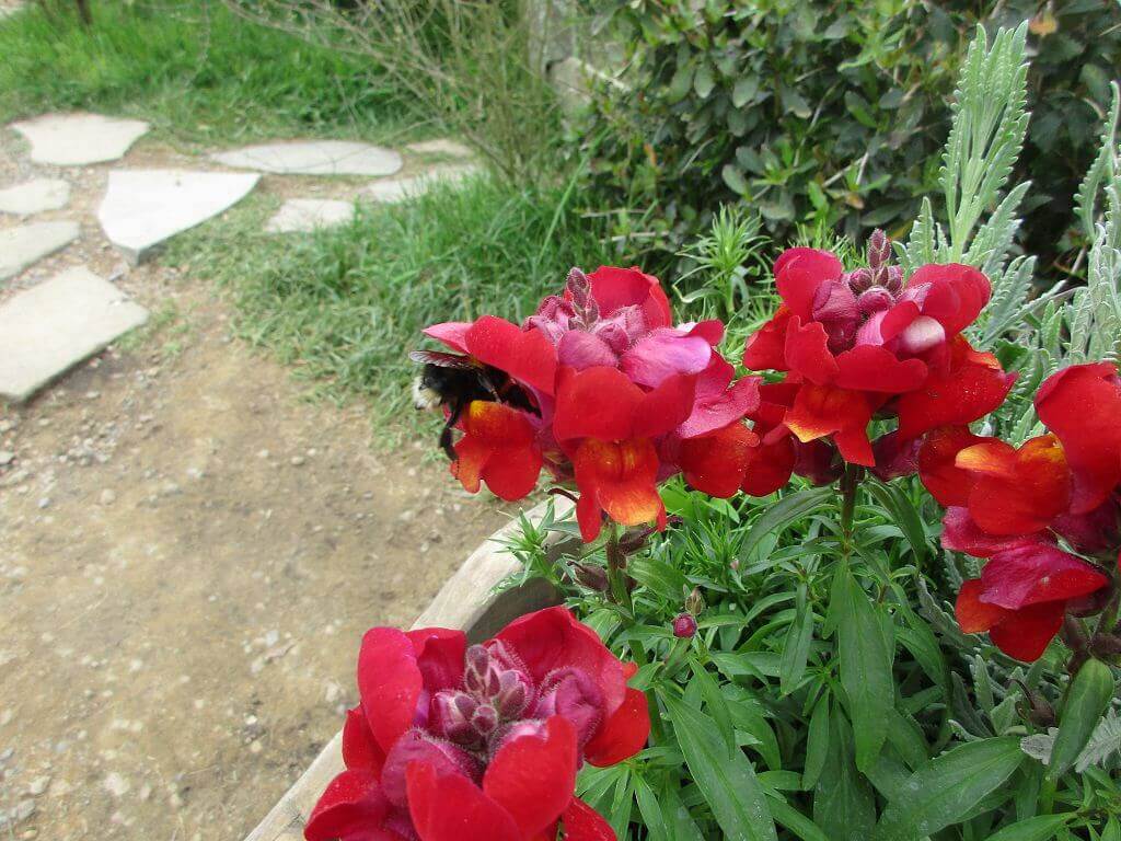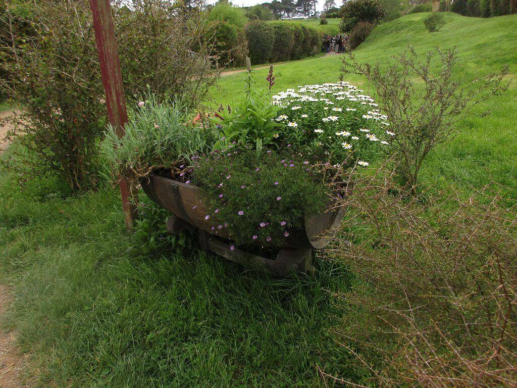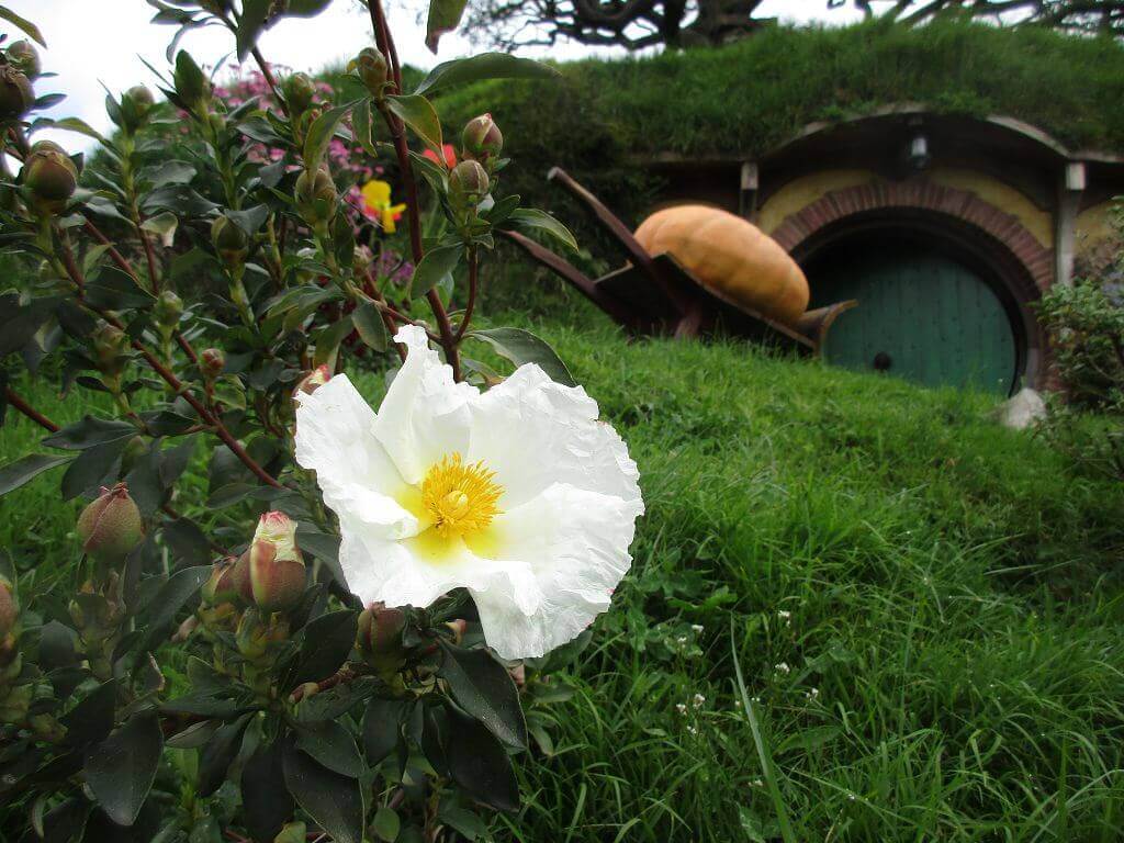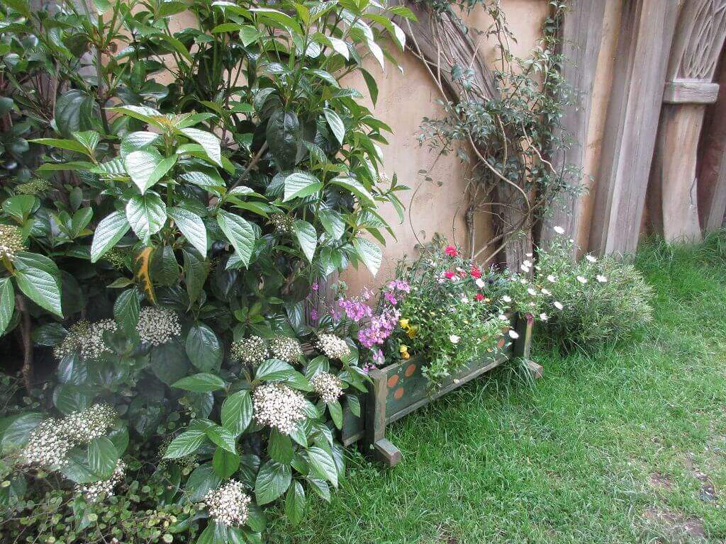 Der Einstieg – in einem verzaubert unwirklichen Land von grünen Hügeln – beginnt in einem Garten. Der Gemüsegarten von Beutelsend. Ein echter – in dem Gärtner am Werk sind. Ich war neugierig, wie das restliche Auenland begärtnert wird. Meine Frage wurde beantwortet, bevor ich sie stellen konnte. Hier sind hinter den Kulissen fünf Profigärtner tätig, die dafür sorgen, dass alles blüht und gedeiht. Klar, ich schaue heute mal ganz bewusst nach der Flora am Ort.