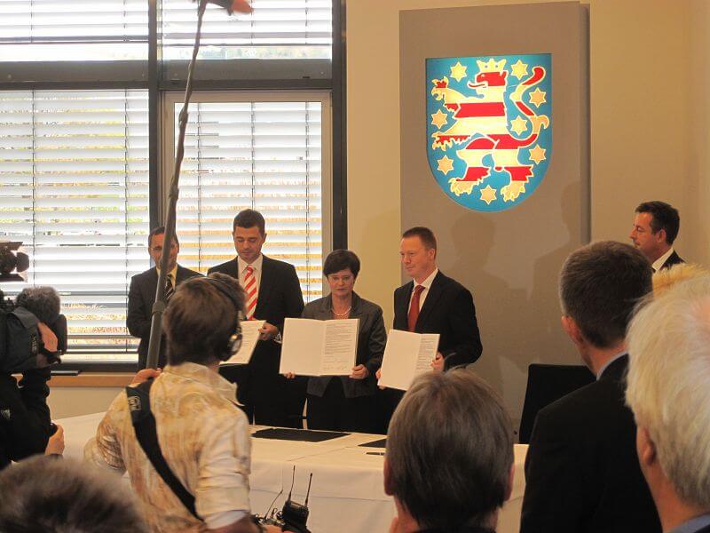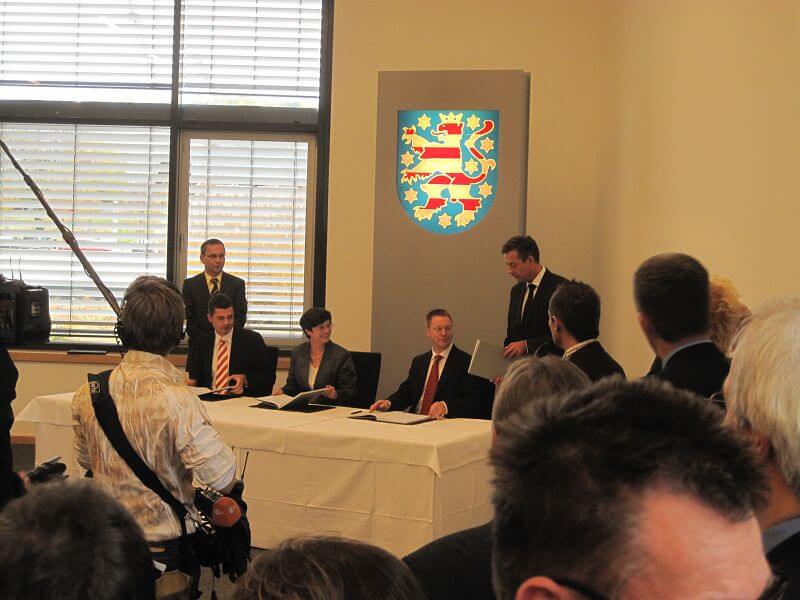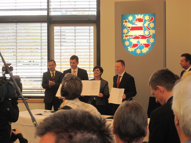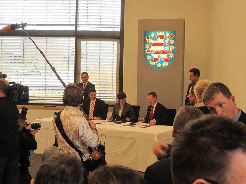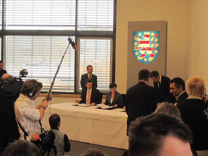 Auch inhaltlich gab es neben dem üblichen Verweis auf die katastrophale Wirtschaftskrise. Kinderbetreuung, Bildung und Erhaltung unserer natürlichen Ressourcen. Das sollen unter anderem Schwerpunkte für die Arbeit der neuen Regierung in Thüringen werden.