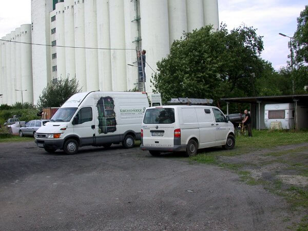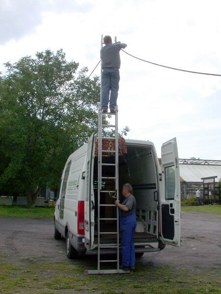 Meine erste Störungsmeldung hat die Telekom kurzerhand nach 30 Minuten vergessen – gut, das ich mich noch ein zweites mal gemeldet habe. Wir hatten in der Zwischenzeit den Parkplatz wieder befahrbar gemacht, indem wir aus dem Kaktusbus einen Leiterwagen gebaut haben um das Kabel wieder in seine alte Höhe zu befördern. Zwei Stunden später kamen die Techniker um sich den Schaden zu besehen.