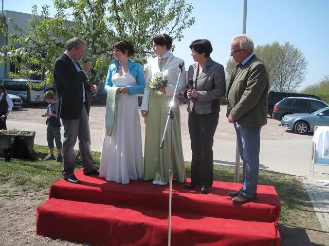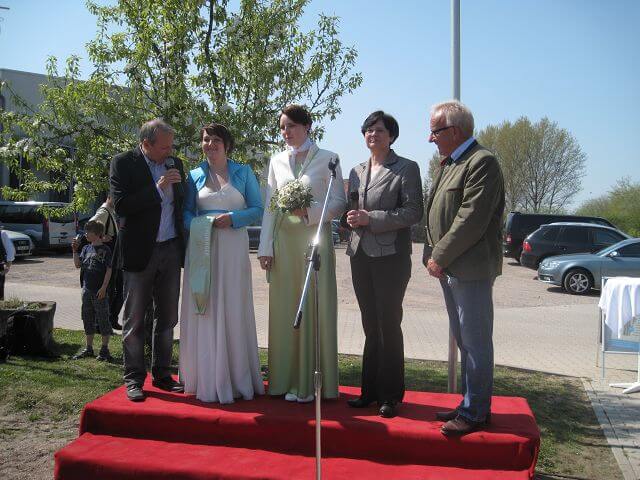 Natürlich bin ich dort nicht alleine gewesen – viele wichtige Menschen waren schon da – unsere Ministerpräsidentin hat höchstselbst den Spargel angestochen und danach in der Schlange vor dem Buffet gewartet bis sie sich etwas der jüngsten Motter-Kreationen auf den Teller nehmen konnte.
